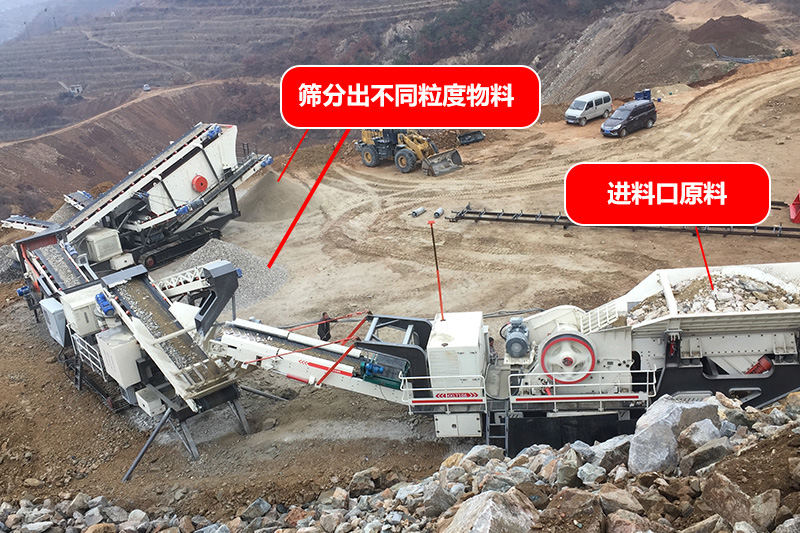 二合一指的是兩臺(tái)車為一套:第一臺(tái)車上放給料機(jī)+鄂破(粗破),第二臺(tái)車上放反擊破+篩子(細(xì)破),注:軟料(反擊破、重錘破),硬料(鄂破、圓錐破)
